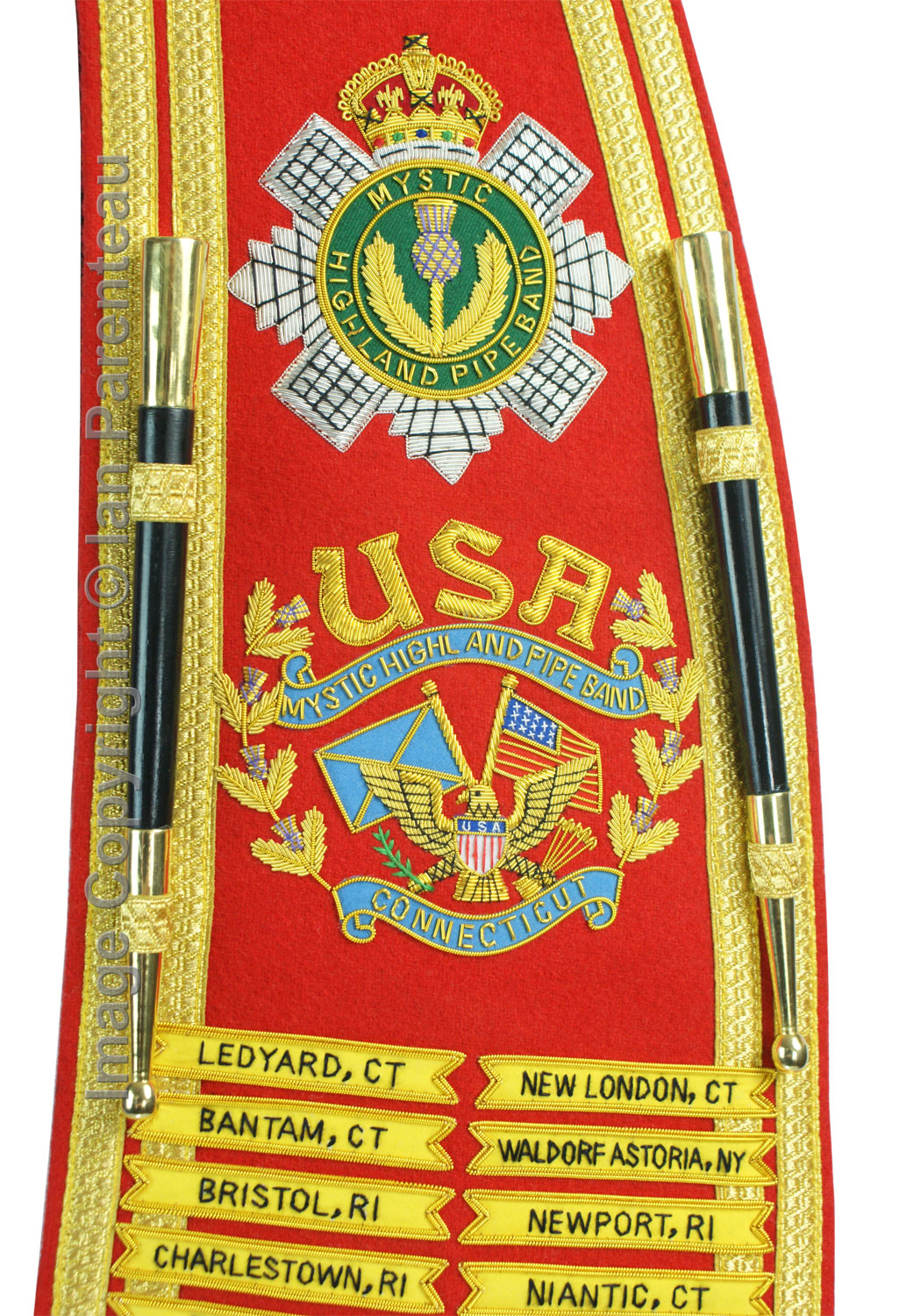 Please contact zafar@glengarryhats.com to discuss your design ideas for your band's custom Drum Major Baldric Sash. |