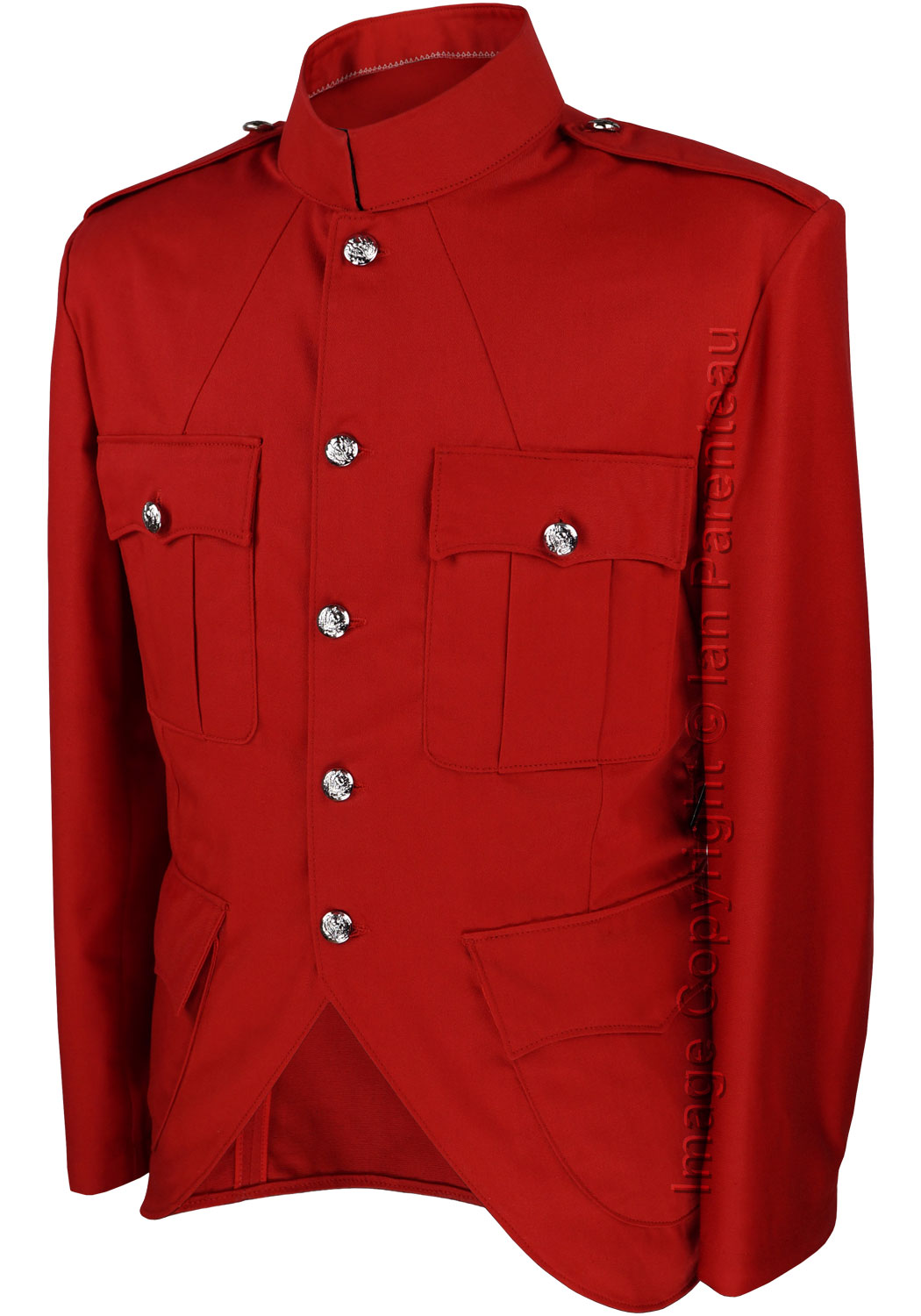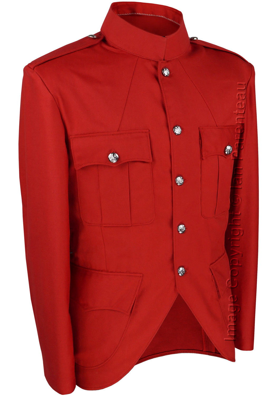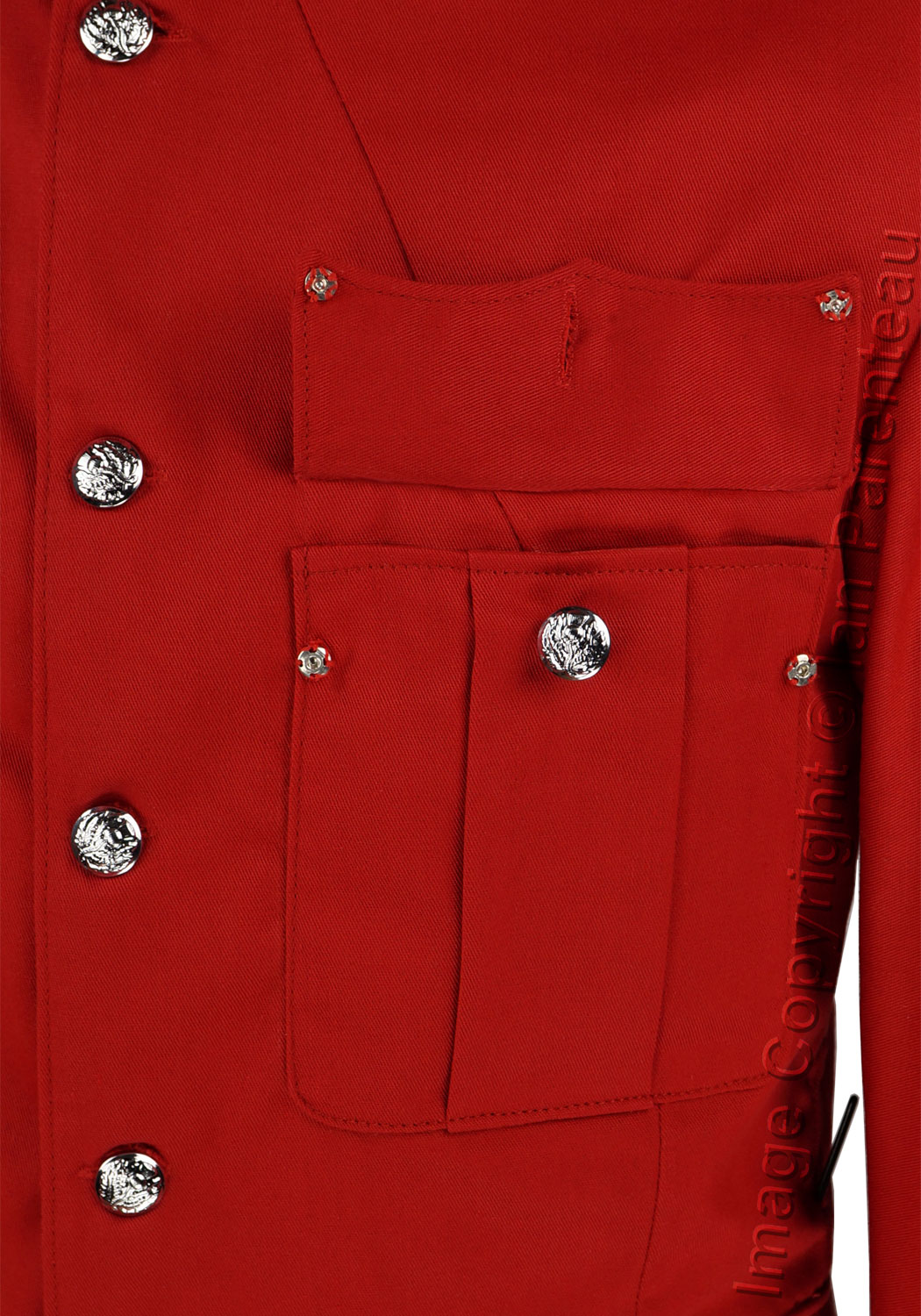 Standup Collar 4 Pocket Unlined Cutaway Tunic, Red Cotton |